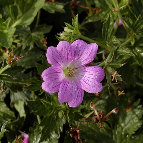Le GERANIUM oxonianum 'Claridge Druce' est vigoureux et c'est un excellent couvre-sol. Il possède un abondant feuillage d'un joli vert grisâtre, denté, gaufré et aux nervures marquées. Ses fleurs sont rose clair veinées carmin. Ce géranium pousse à 50 cm de haut, en terrain frais, au soleil ou à mi ombre et fleurit en début d'été.