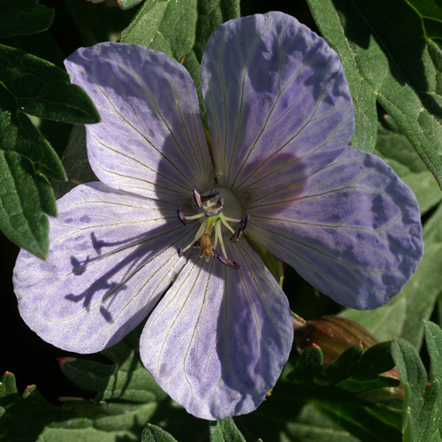 Ce géranium des prés à une forte végétation. Feuillage étroitement découpé, denté. Fleurs bleu nuancé gris perle. Couvre-sol idéal pour de grandes surfaces.