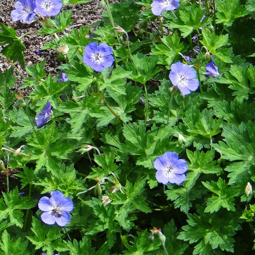 Fleurs bleu franc veinées de pourpre à coeur blanc. Le plus célèbre pour sa longue floraison. Indispensable au jardin et sans souci, juste l'arroser lors des fortes chaleurs pour maintenir la floraison. Excellent couvre sol.