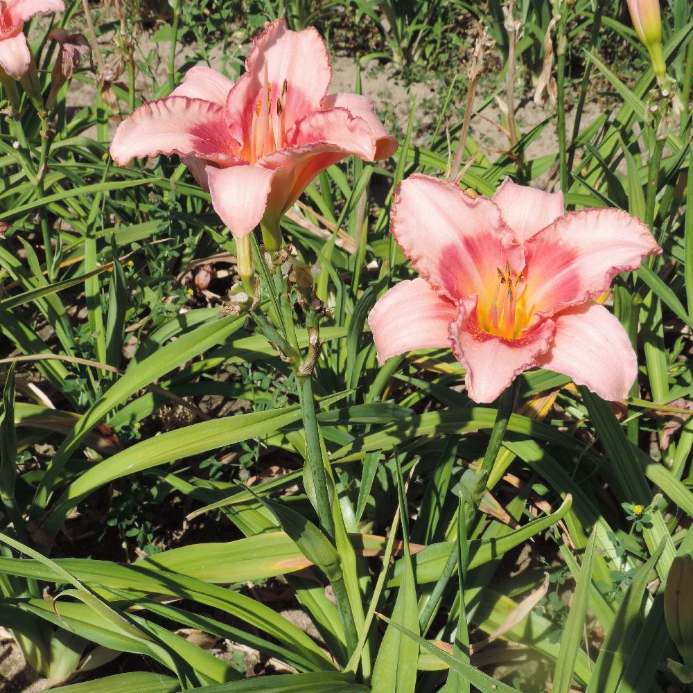 Très connue pour sa robustesse, l'Hémérocalle est d'une rusticité à toute épreuve et figure parmi les plantes vivaces à la plus grande longévité. Souvent recommandée en sol sec où elle résiste bien, c'est en sol frais que cette plante vivace atteint sa pleine beauté. Feuillage persistant. Floraison remontante et odorante. Fleurs rose tendre bordé de rose fraise, avec un oeil de la même couleur au dessus d'une gorge jaune vert.