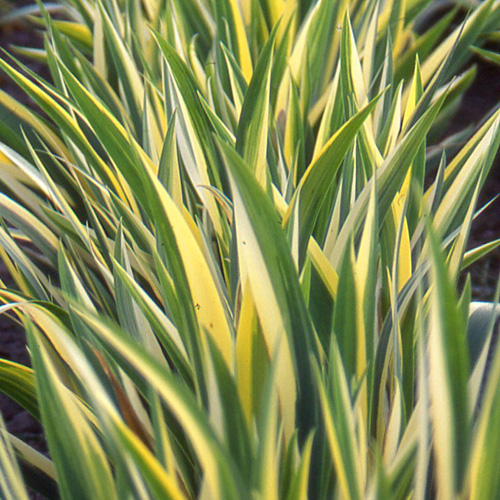 Cette espèce aux longues feuilles étroites, effilées en pointe, semi-persistantes apprécient les emplacements bien drainés et secs. Forme à feuillage panaché de jaune. Fleur bleu lavande parfumée.