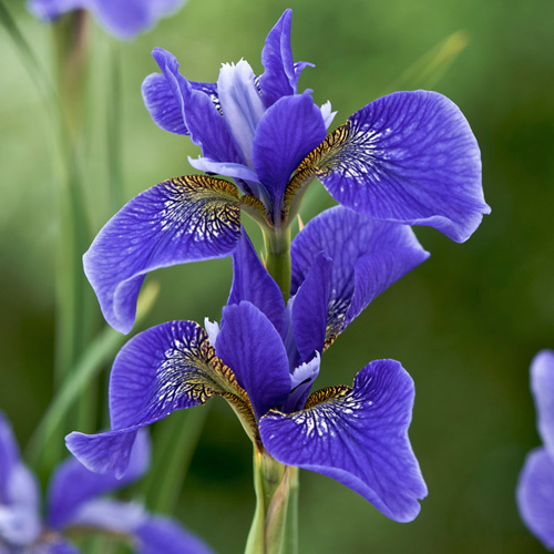 Les IRIS sibirica ou Iris de Sibérie, sont des plantes vivaces très robustes. Cette espèce poussent bien dans tous les sols, mais les préfèrent frais ou humides même s'ils résistent à la sécheresse. Les feuilles étroites de ces IRIS, s'élèvent en belles touffes et leurs fleurs sont particulièrement intéressantes en bouquets. Bleu violacé.