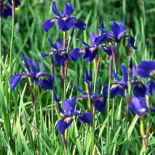 Les IRIS sibirica ou Iris de Sibérie, sont des plantes vivaces très robustes. Cette espèce poussent bien dans tous les sols, mais les préfèrent frais ou humides même s'ils résistent à la sécheresse. Les feuilles étroites de ces IRIS, s'élèvent en belles touffes et leurs fleurs sont particulièrement intéressantes en bouquets. Bleu violacé vif.