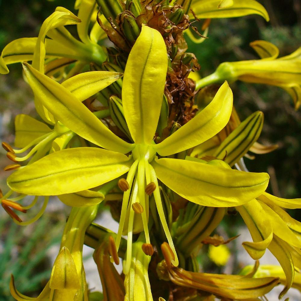 L'ASPHODELINE lutea est une plante vivace rhizomateuse de sol riche et poreux, en situation chaude. Elle résiste parfaitement à la sécheresse. Ses feuilles sont épaisses, longues, à section triangulaire, gris bleuté. Son port est élancé surmonté de longs épis de fleurs jaune d'or de mai à juin.