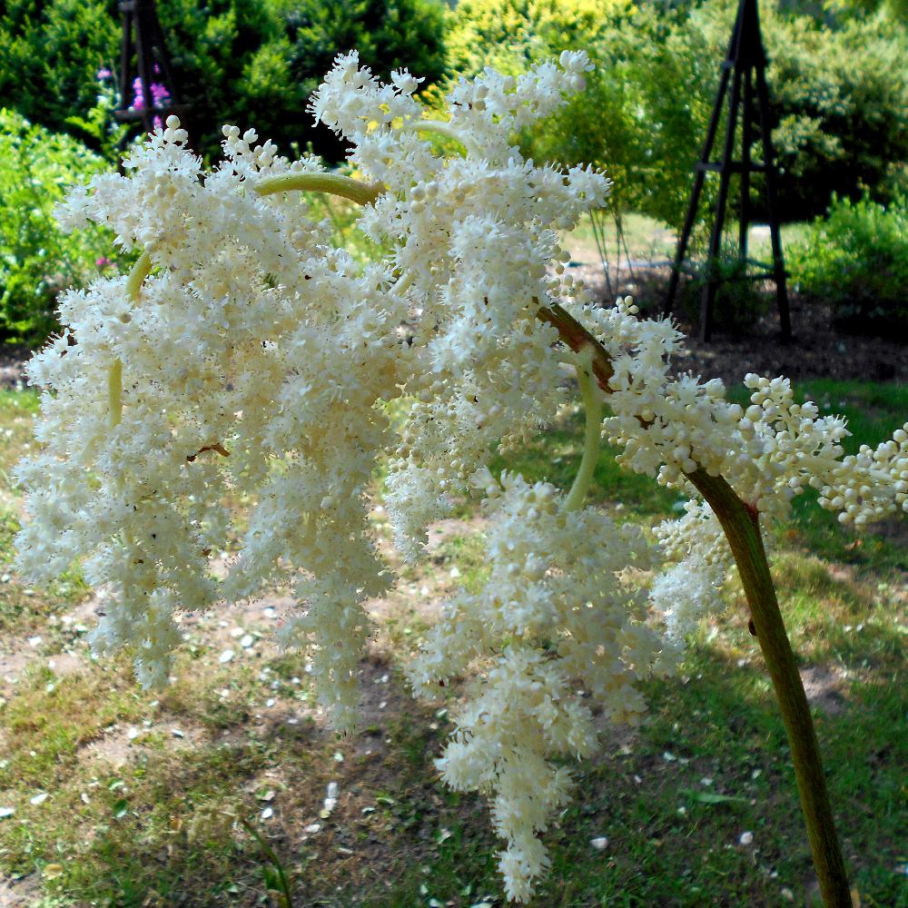 L'ASTILBOIDES tabularis à des grandes feuilles rondes, festonnées, vert clair, exubérante, atteignant 50 cm de diamètre. En été, apparaissent des panicules plumeuses de fleurs blanches en épis ramifiés, retombants, d'un effet des plus décoratifs.