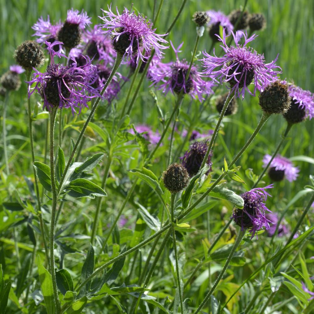 La CENTAUREA scabiosa est de culture facile, cette espèce, aux tiges solides, rugueuses, se pare l'été de fleurs violet pourpre avec des fleurons périphériques plus longs.