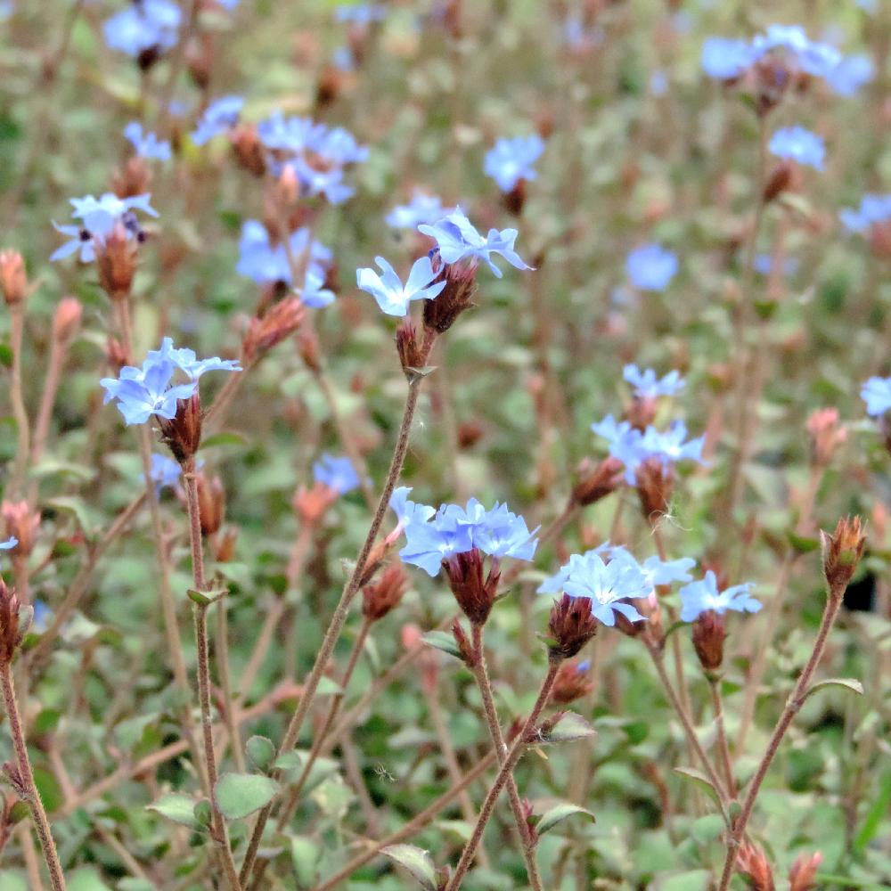 LE CERATOSTIGMA griffithii est un sous arbrisseau à feuilles charnues vert bronze, semi-persistant ou persistant en climat doux. Ses fleurs sont bleu intense, sa résistance parfaite à la sécheresse et au bord de mer.
