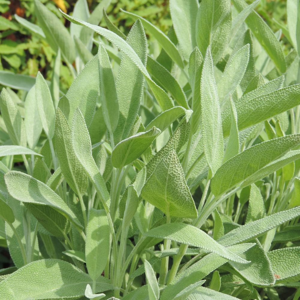 Sauge officinale compacte au feuillage aromatique vert argenté et à la floraison blanc pur, rare et lumineuse.