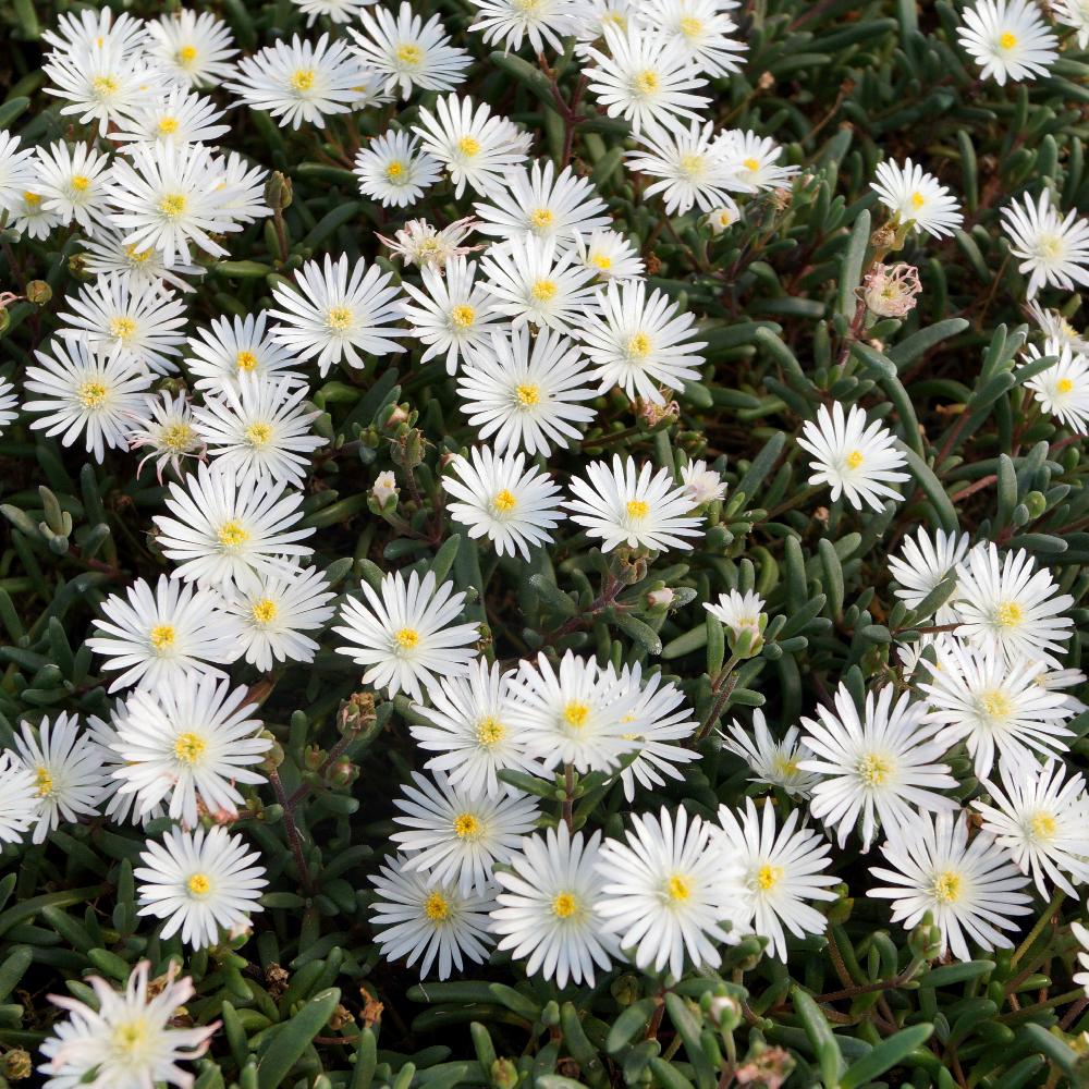 Feuillage succulent vert glauque, très dense, s'étend très rapidement. Du printemps à l'automne il se couvre de petites marguerites blanc pur à coeur jaune. Rustique aux environs de -12 ° en terre bien drainé