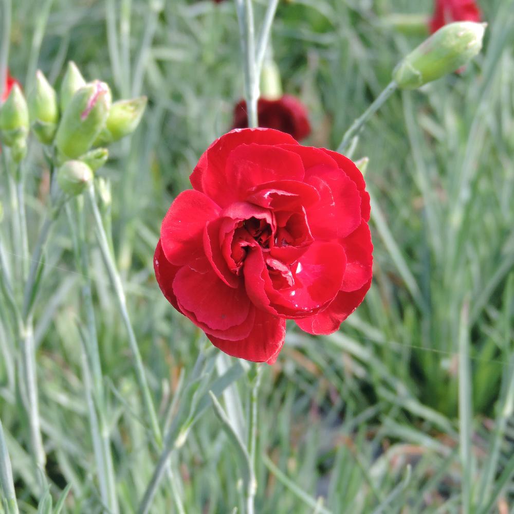 Le DIANTHUS 'Desmond' (Plumarius Group) est un oeillet mignardise, unicolore. Cette variété de 25 cm de haut est doté d'un feuillage bleuté persistant et ses fleurs parfumées sont doubles, rouge feu de mai à juillet. Il se plait au soleil en terrain sec, en sol peu profond sur rocher, en muret, fissure ou rocaille.